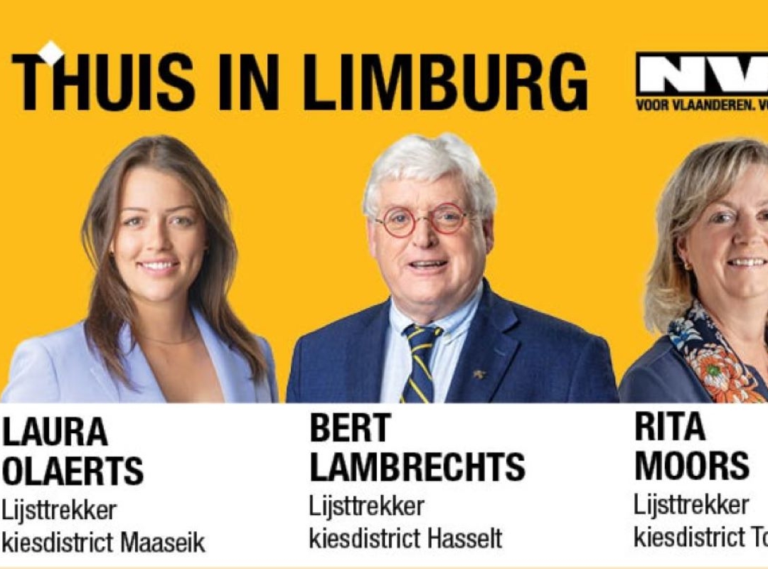 De N-VA werkt verder aan een Limburg waar iedereen zich thuis voelt:• Welvaart voor alle Limburgers• De mooiste en groenste provincie• Vier miljoen euro besparen• Voor een veilig Limburg   Stem daarom …